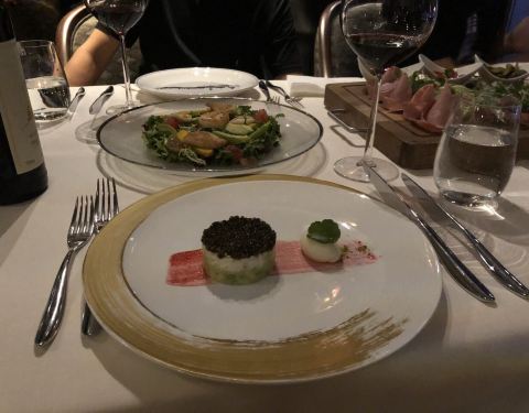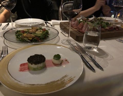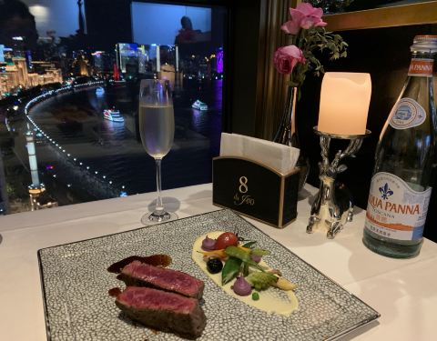 美食林最美夜景 大学最好的朋友,来上海出差。 想挑好看的餐厅看夜景,而魔镜景观位最多,所以就选了它。 味道吃下来的感受是中规中矩,不过和好朋友聊天就很开心! 可能因为景色还不错,感觉反而上座率很高,应该是有很多男女朋友来庆祝纪念日的吧。 【菜品】 「m9西冷牛排」 「金枪鱼牛油果塔塔」 「香煎鳕鱼配新西兰鳌虾」 「南瓜汤」 「鱼子酱帝王蟹塔塔」