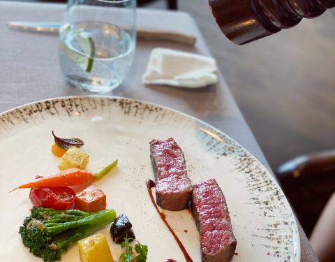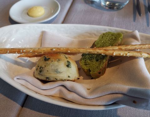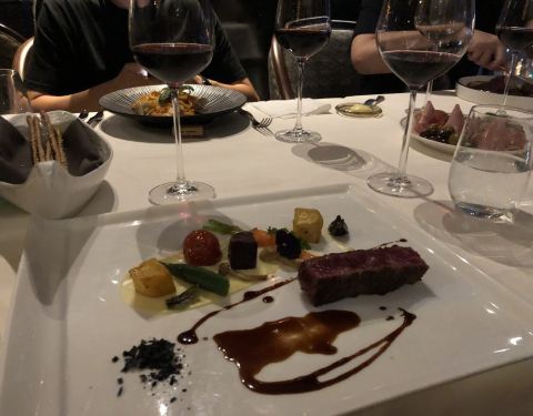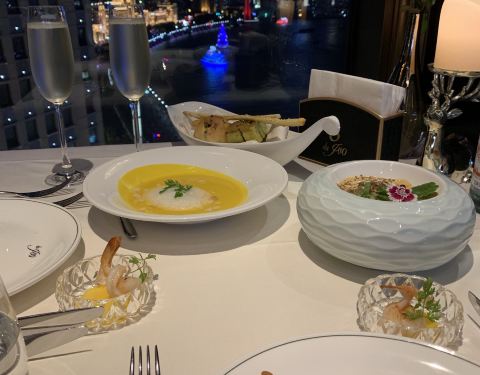 餐厅就在外滩旁边,可惜今天天气不好,云雾比较多所以都是朦朦胧胧的,但整体视线还是比较舒服的。那样装修都还可以。 【口味】口味我很喜欢,从餐前面包、前菜所有的下来都还不错。最喜欢意式番茄土豆丸子,土豆丸子的口感很喜欢!M3和牛西冷5分熟,尚可。鳕鱼肉偏柴了一些,一般。 南瓜浓汤奶香很足,南瓜味淡了一些,看个人喜好,我个人喜欢南瓜味多一些的。汤里的杏仁片是点睛。 帕尔玛火腿配蜜瓜:好评!喜欢!火腿也不错~ 【服务】全程服务亲切 有人会给你倒水服务。虽然今天有个小哥哥服务员好像对展示气泡水倒气泡水倒流程不是很熟练,但还OK啦,看得出他很努力的样子。