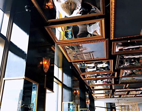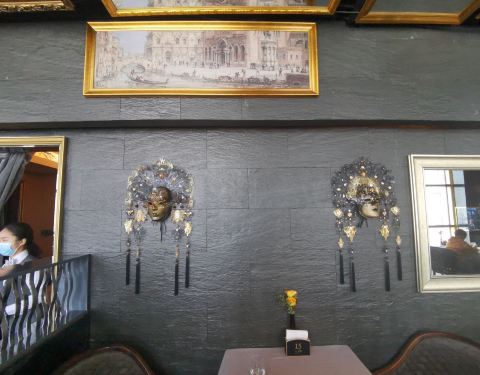 da Ivo 意大利魔镜餐厅位于金陵东路1号23楼,装修有种内敛的美感,造型各异的魔镜铺满了整个餐厅的顶部,墙上有造型各异的魔幻面具。景观位可以看到大半的黄浦江两岸景观。下午茶套餐性价比不错,菜品摆盘精美,味道见仁见智。