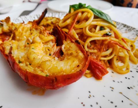 约上闺蜜好友,最适合不过!点心搭配的很精致,品种很多,咸甜适中!龙虾面味道一般吧