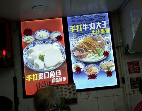香港仔鱼蛋王,据说是24小时营业的。点了推荐的招牌鱼蛋、净牛腩和炸云吞。招牌鱼蛋,很大一碗,里面除了鱼蛋以外还有鱼肉排。清汤煮的,鱼蛋较清淡,口感爽滑弹牙;汤却很鲜美,浓厚鱼肉香。净牛腩,里面的内容比较丰富更像是一盘牛杂。牛腩牛筋味道比较好,而牛肚之类的腥味很重。炸云吞,个头不小且皮薄馅多。皮被炸成了金黄色,酥脆味香。猪肉馅的云吞,还裹了些虾肉,搭配的酸甜酱,清新爽口。