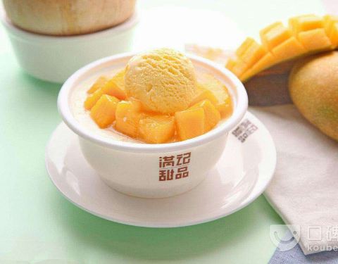 最爱芒果班戟,冰冰的芒果。那个果仁双皮奶也不错,不过就是只有核桃和杏仁片。我应该要芒果+果仁的