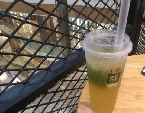 一时间满记甜品到处都是,北城天街这家位于3楼,店外走廊有专门的区域供食客休憩,只是不太凉快,去的时候正在搞饮料第二杯半价的活动,相当于39元2杯。其主打的4款饮料选择的小草茉绿,一整颗新鲜柠檬密封于杯中,略显酸涩,与绿茶的清香融合在一起,相映成趣,清爽宜人,冰爽沁凉。