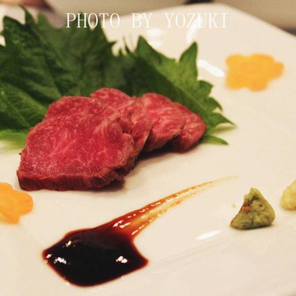 这家和牛店,客人是围坐在桌边,专门的料理师傅在中间大展手艺,可以目睹和牛由生变熟的真个过程。前菜,一道生牛肉,小小五片,意犹未尽啊!不愧是听着音乐长大的神户牛,生牛肉也不腥,凉凉的滑入喉咙口。吃完...