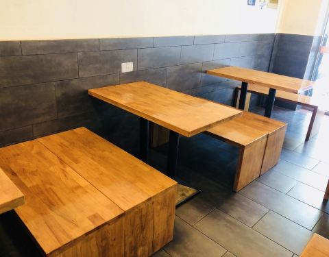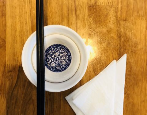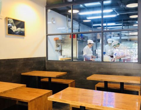 竹制桌椅颜色不错,水饺也好吃
