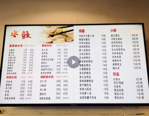水饺,水饺…… 可以开票的水饺…… 大份的没有,大份的,卖完了,只有这个这个和这个……小份的!