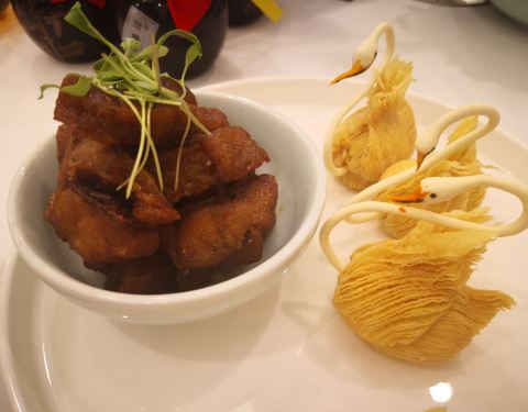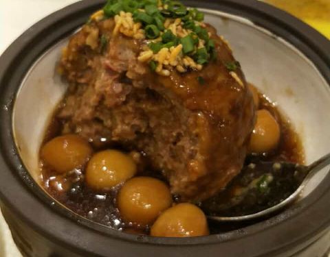 - 很赞一下八宝狮子头,肉质鲜嫩,味道超级好,里面有蛋黄,梅干菜还有其他很多种材料,真的好吃