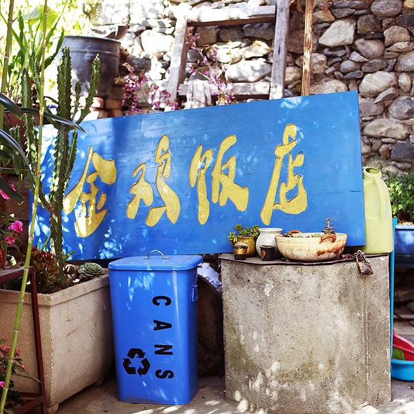 在民宿休息时就大众点评搜索了一番 最后选定了一家五星的云南菜馆:金鸡饭店 跟着大众点评的地图找过去的,在一条小巷子里,很容易错过。 在人民路与广武路交叉口南巷内10米。 小小的庭院长满了迎春花和绿竹。 小院落里有两张餐桌,餐厅里有三张餐桌,总的来说蛮迷你的。 她家的标语就是:庭院 私厨 下午茶 她家午餐时间是12:00——14:00.