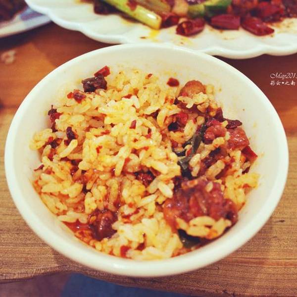 朋友推荐了这家店,从步行街一个岔路口走进去,没在主街道,比较清静。院子里植物繁茂,室外餐桌不错,不过晚上会有一些小虫子。两个人点了三菜一汤,豆腐找肉的豆腐有一点酸味,不知道是不是这边的豆腐就这样。酸腌菜炒红豆蛮好吃,红豆酥脆,青椒炒云腿,火腿有点咸。