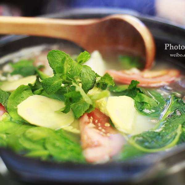 - 黑山羊锅,加了薄荷,汤头鲜美,肉质香嫩。酸辣牛肉沫,青木瓜的酸,特别下饭。店面不大,处处透着小清新