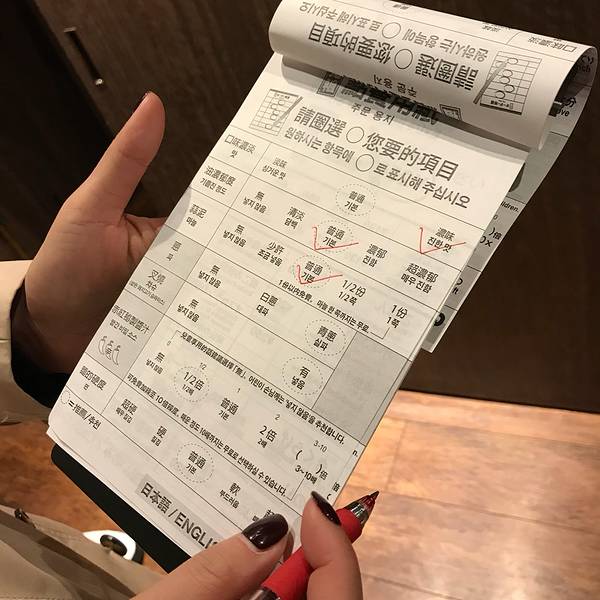 - 服务员会派份表给你填,你要选自己的喜爱的口味,包括辣度、湯🥣的浓度,面的硬度等。下午五点已经有排队