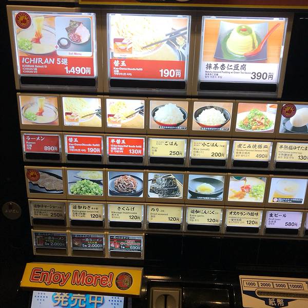 网红的一兰拉面下午五点已经有排队进去后要先在自动贩卖机上选心仪食物服务员会派份表给你填,你要选自己的喜爱的口味,包括辣度、湯🥣的浓度,面的硬度等这显示器会显示店内座位是否有客人进餐或空闲客人在里...网红的一兰拉面下午五点已经有排队进去后要先在自动贩卖机上选心仪食物服务员会派份表给你填,你要选自己的喜爱的口味,包括辣度、湯🥣的浓度,面的硬度等这显示器会显示店内座位是否有客人进餐或空闲客人在里面都有自己的 空间进食,中间有档板隔着以免打扰隣座厨师会在你座位的窗口把食物传给你后关上