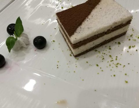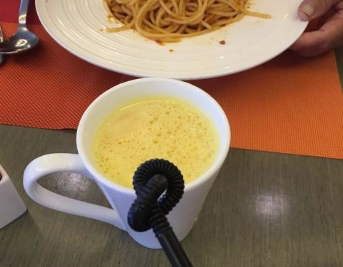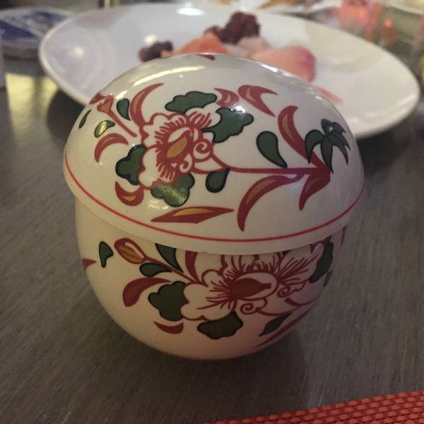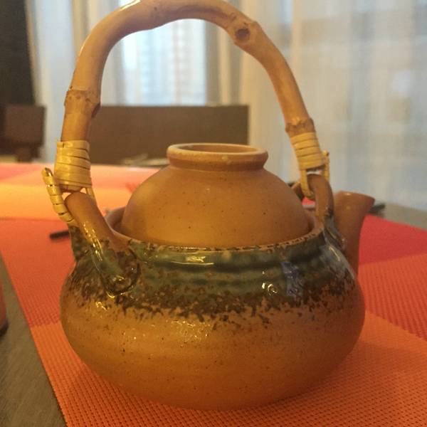 奶油龙利鱼很好吃,软软的,口感很好。这个长的像小酒壶的东西里装的竟然是汤品,造型很美,顶上是小碗保温