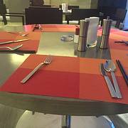 新街口的诺富特酒店开业没多久,酒店的自助餐厅是对外营业的,最近在搞优惠活动,所以和朋友一起来吃了。诺富特在繁华的新街口中心,苏宁电器的隔壁楼上,餐厅在四楼,进入酒店大堂就会有人热情的指引我们坐电梯到上去。 餐厅环境很好,座位不是很多,基本上是满座,比较安静。菜品不是特别丰富但该有的基本上都有了,而且中餐、西餐、日韩料理都有,种类比较齐全。这个长的像小酒壶的东西里装的竟然是汤品,造型很美,顶上是小碗保温。还有这个很漂亮的盅,里面是海鲜汤,味道很鲜,放了鲜虾、蛤蜊等海产品,就是稍微有点咸。朋友一上来就端来了刺身,话说切的有点略厚,对我这种本来就不喜生食的人来讲就是种折磨,不过尝了一小块觉得还蛮好的,没有很浓烈的腥味。沙拉有自己拌的也有已经调制好的总厨沙拉,味道一般。热菜全部加盖保温起来的,基本上都是中餐类的炒菜和炖品之类的,味道不错。奶油龙利鱼很好吃,软软的,口感很好。这个季节还不是吃螃蟹的时候,这个应该是梭子蟹一类的,肉不是很饱满。华夫饼和甜筒卷,吃冰激凌必备的,但是他家的冰激凌真的不敢恭维,不知道是冷冻装置出了问题还是本身就如此,冰激凌基本上化成水了,特别稀,只能用小盅盛来吃了,味道当然不会好到哪里去。他家有很多造型霸气的面包,不过来吃自助应该很少有人吃面包这种饱腹感极强的吧,看它更像是摆设。他家的明星产品就是这个榴莲千层了,基本上每桌必备,榴莲的味道不是特别重,基本上一端出来就被拿光了,拿出来之前是冷冻的,导致放了很久之后榴莲还是冻住的状态,大大影响了口感,不过我还是吃了两大块,榴莲是我的大爱啊。总的来说他家的自助比较一般吧,菜品种类中等,味道尚可,比较推荐的有牛排,奶油龙利鱼还有榴莲千层,其它的感觉一般般。 价格方面,晚餐原价是230,团购价是138,五月份搞优惠活动,限时优惠价是98元,不过我觉得他家的品质也就是98元的水平,再贵的话就不值了, 服务方面很好,毕竟是星级酒店的餐厅,服务没的说,不管是楼下的引导还是餐厅服务员都非常热情,撤盘也很及时。