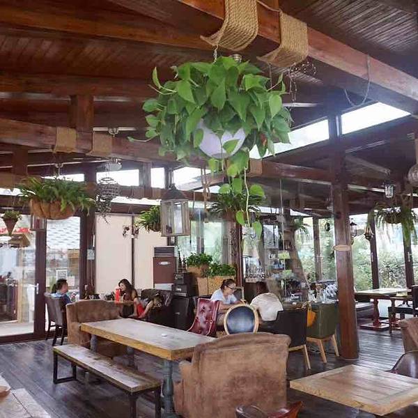 巴厘岛风格的装修,建造在海面上,全木质的水上屋与海最亲密接触的咖啡馆,室外木质窄窄的过道里,摆...