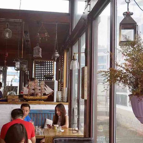 银海大世界里面的咖啡吧。 很有feel的一家店。如果不是老同学带着一起来。大概也找不到。靠窗位可以欣赏海景。露天位的大沙发很适合几个朋友轻松谈心,等秋天天气凉爽一点,应该坐露天位更舒服。除了靠海的露天位,庭院里也有位子,木质的桌椅。室内区分有空调和无空调的。外国宁应该会喜欢无空调吧。柠檬水自助式,服务员态度一般。 环境小清新。木质材料为主。工作日的下午也一样蛮多人。来这里的美女比较多~ 酸奶堆是招牌。颜值棒棒哒。谷物、水果、酸奶层层叠叠的堆积在透明的玻璃杯里,女孩子应该都会喜欢,热量也不高,吃起来没负担。玫瑰苏打粉嫩嫩的。上面点缀了玫瑰干花的花瓣。口味清淡,然而并木有玫瑰香,还是换另一款点比较好。