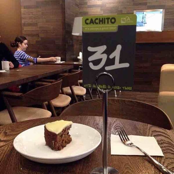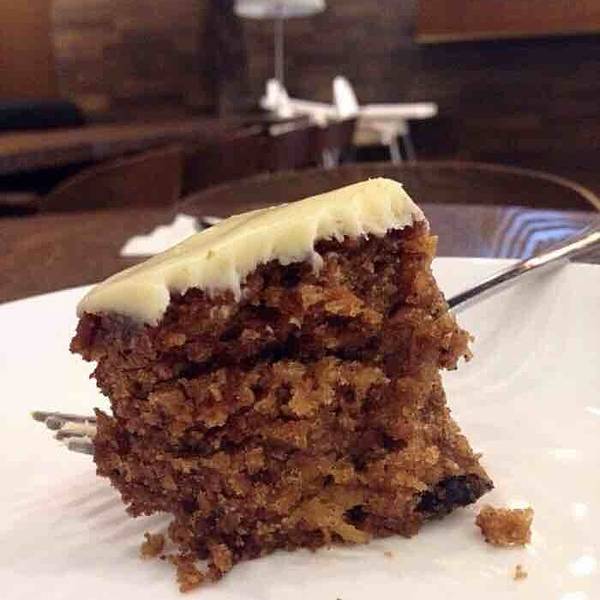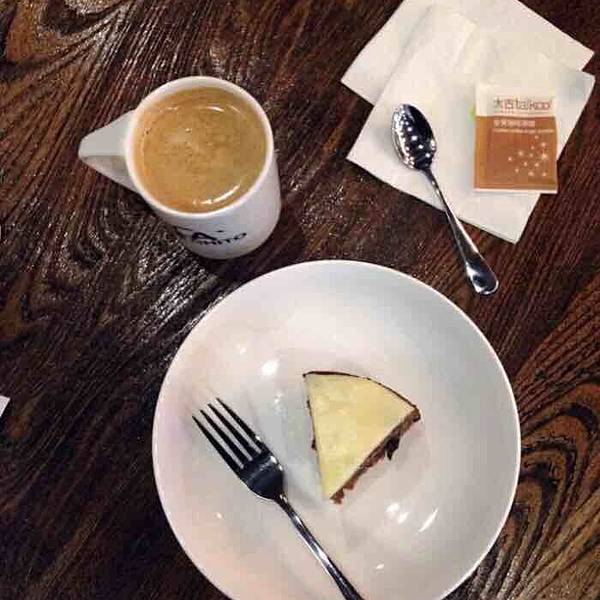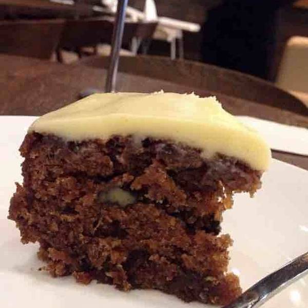 头一天和小伙伴聊起胡萝卜蛋糕。我说不爱吃胡萝卜,她说但是你一定会爱吃这款蛋糕,想想我印象中有这款蛋糕的就只有卡奇多啦~ 第二天我就跑来这里特意来吃胡萝卜蛋糕,看样子一点看不出这货是胡萝卜做滴,深褐色的蛋糕体,长的也很粗旷,不像芝士蛋糕那样平滑细腻,吃一口湿润厚重而且好甜呀!很丰富的味道,只有很微弱的胡萝卜和味道,完全和想象中不一样!很好吃的蛋糕^_^,不爱吃胡萝卜的小伙伴也会喜欢这款蛋糕~ 搭了一杯美式咖啡,正好中和一下甜甜的蛋糕~ 坐了一会儿,环境挺好的,下午的客人不多,服务生们热情有礼~