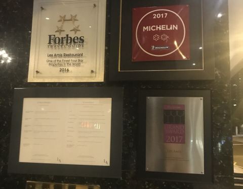 Les Amis Restaurant从1994年创立以来,一直都是当地广受欢迎的老牌高端法式餐厅,高大宽阔的用餐空间,内部的部分墙壁以高贵的红色天鹅绒装饰,华丽精致的水晶枝形吊灯,墙上挂着珍贵的名家画作,处处散发出古朴典雅的气息。菜品将现代美学和法式烹饪技巧结合起来,提供在视觉上和味觉上的双重享受。