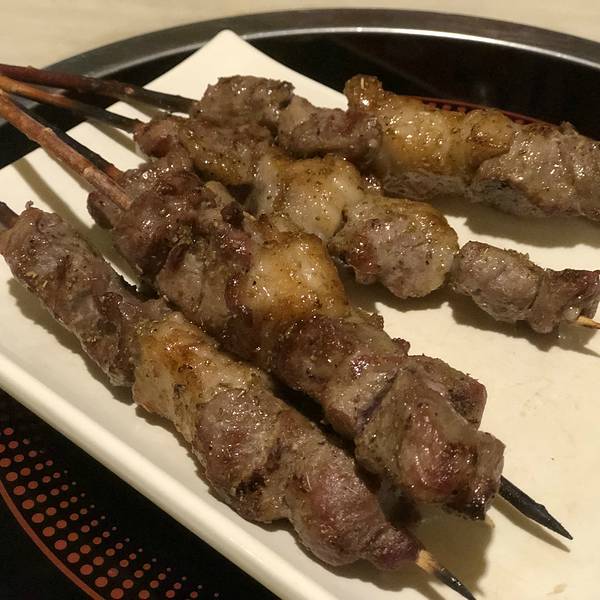 - 我对羊肉串情有独钟,他们家的羊肉串味道的确是不错,肥瘦相间,刚端上来的时候还流油的,羊排的味道...