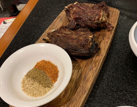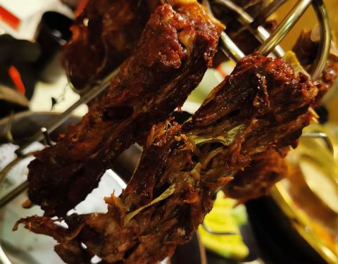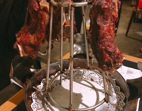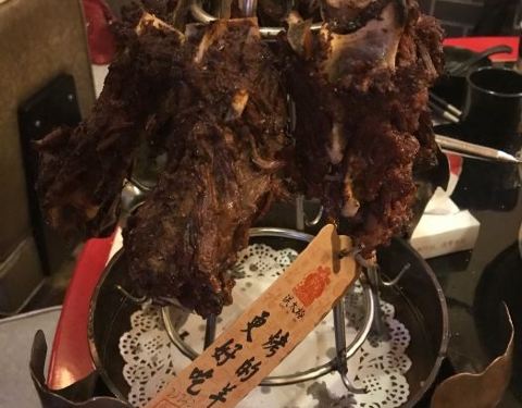 - 不得不说说这家的羊蝎子,哈哈,不是放在火锅里的那种,是烤出来的,挂在挂钩上的