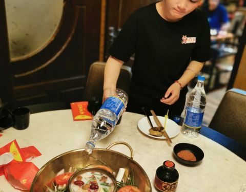天冷的时候一直来这家涮羊肉,这家肉的品质非常好,所以来过很多次,也带过朋友来光顾。 [环境]二楼的环境不错,基本小圆桌形式,还有包房。 夏天来了,店家也推出小龙虾了,|经典十三香龙虾^味道不错,店家还有提供一份面,加入小龙虾汤汁里,特别好吃,值得一试。 点了最简单|冰泉水火锅^,工作人员每次补锅底都是加入冰泉水。 这家的|热气羊肉^是本人的最爱,羊肉厚实,口感极佳,这才是本人一直光顾的原因之一。