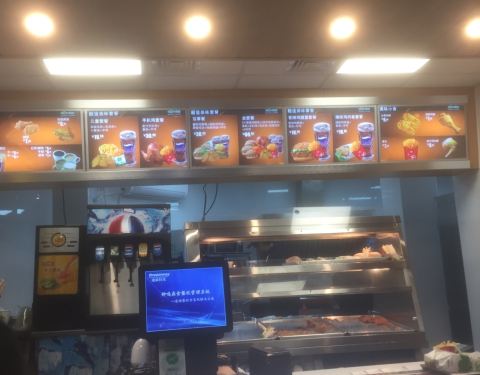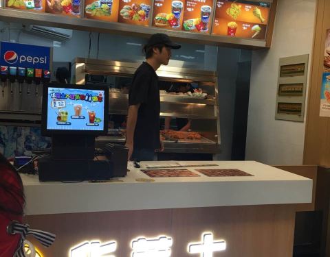 在麦当劳对面,店面对大马路,前面是交通灯,路过的人不少。但面积不大,服务员人手不够,忙不过来,点完餐还要等10分钟左右才拿到食品。