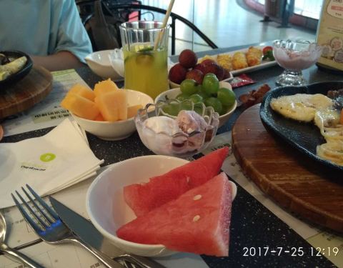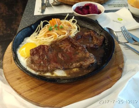 冰激凌很好吃,水果供应及时。牛排味道也不错。