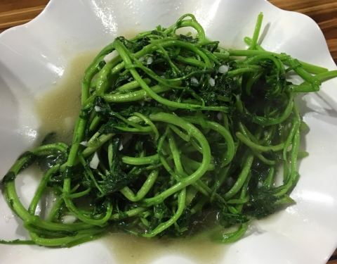 野菜失误了,忘记下去挑,结果上来的野菜没有上次自己挑的好吃,有点苦。茄子的味道一般,卖相也有点差