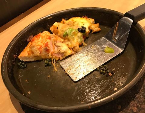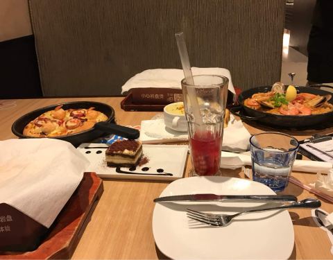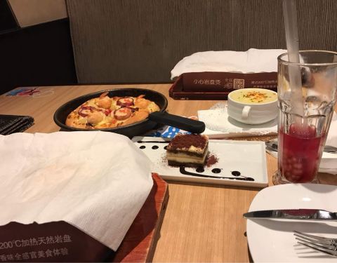 - 中午又到它家消费一把,点了双人套餐,带有浓郁番茄口感、饼面厚实的美式披萨成了最爱。总体还是非常满意的