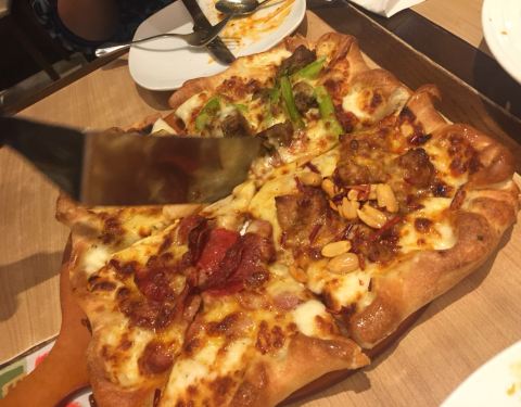 中午又到它家消费一把,点了双人套餐,带有浓郁番茄口感、饼面厚实的美式披萨成了最爱。总体还是非常满意的