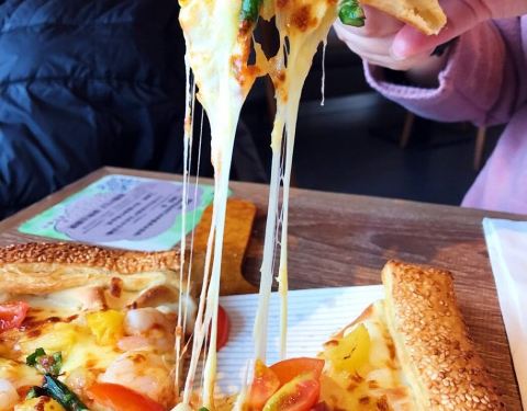 今天这一餐一定要给五星好评 这里有得天独厚的海景座位;可以说是最美必胜客了吧✨✨✨,天晴的时候、窗外的碧海蓝天,海鸥飞翔;夏日可听雨,冬日可赏雪;甚至有些羡慕这里的工作人员^_^ 新品酥皮芝心海陆双尊披萨,又香又酥的饼边里面还有浓浓的芝士夹心!吃起来好满足!原来最不喜欢吃的披萨饼边现在好吃的停不下来!馅料也比以往更丰富美味!圣诞小吃拼盘也不错:烤翅+薯格+鳕鱼棒+炸虾,炸虾做成圣诞袜的形状,鳕鱼做出圣诞树的形状⛄️,小朋友一定会更喜欢这个拼盘^_^