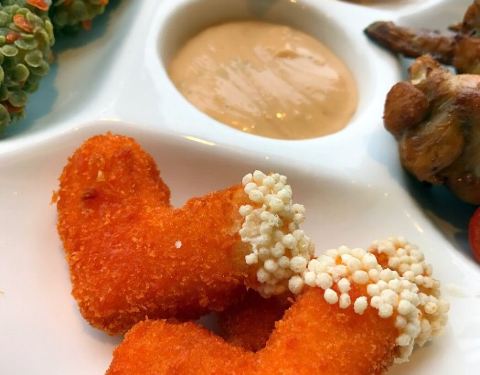 - 圣诞小吃拼盘也不错:烤翅+薯格+鳕鱼棒+炸虾,炸虾做成圣诞袜的形状,鳕鱼做出圣诞树的形状⛄️,...