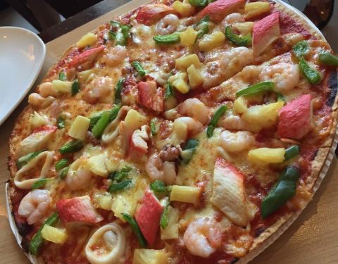 推荐小吃拼盘哦,香香脆脆的很好吃,就是量略少。牛排汁很不错,肉质有待提高,不过总体还好啦。小龙虾pizza很赞!