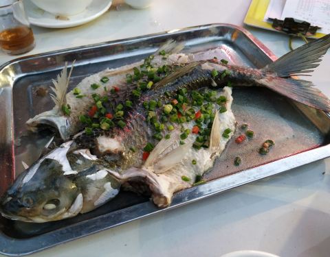 鱼肉好滑,好鲜甜,好好吃。挺好吃的,大家都吃得很回味。亲戚们走到大厅里点菜了,点了6个菜和一个焗饭