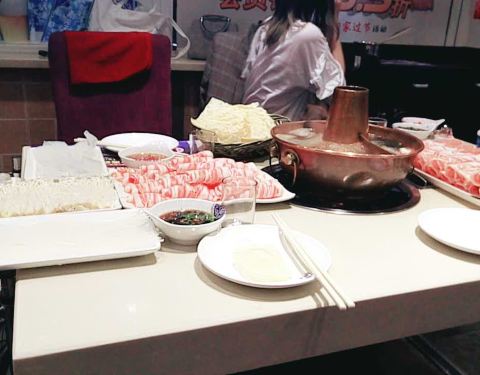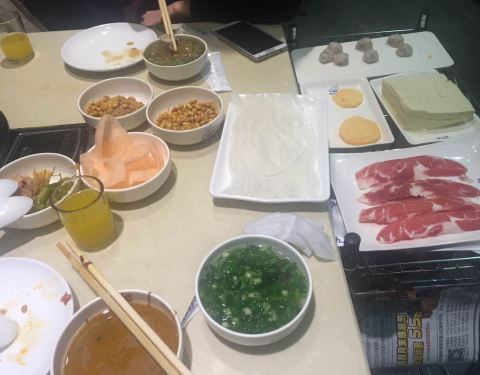 ...最有特色的就是大刀肉,用大铡刀一样的刀现切大片羊肉,口感非常好,而且大大的一片吃进嘴里特别满足