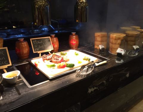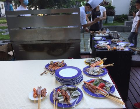 晚上肚子饿又不想跑太远,就在酒店吃自助餐。刚好餐厅搞活动,打完折不到160元,本来期望不高的,但食物的品种很多,中、西、日都有,而且供应源源不绝,怪不得全场满座。