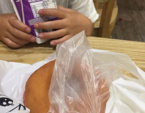 儿子每天叫我给他买一瓶牛奶和一个面包当早餐,面包他特爱吃这个葡萄奶酥味的,百吃不厌。
