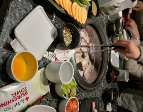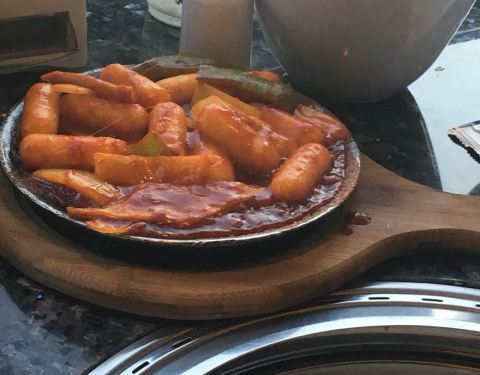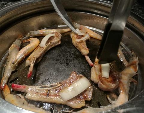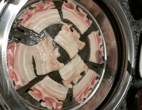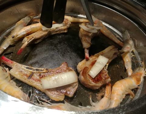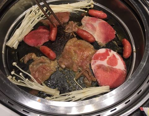 那个什么肠??蜜汁味道 六人桌的设计很不合理诶 烤肉盘竟然不是在中间? no next