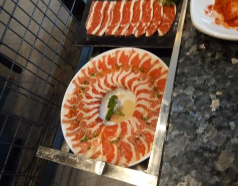 招行五折优惠过来,宫廷烤肉和双拼牛肉都不错,孜然酱料非常香,还送了蔬菜泡菜等小吃。如果是原价的话价格小贵,人均一百