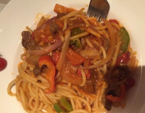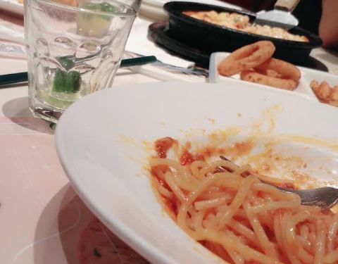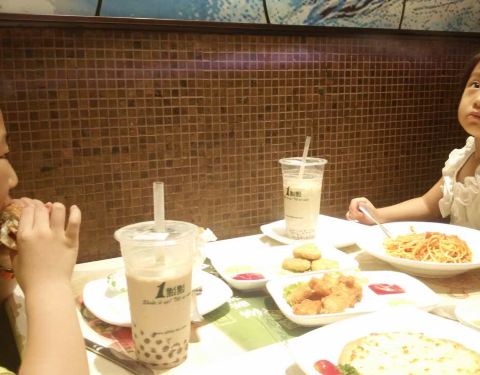 东西还好吃,点了牛排,意大利面,披萨,还有鸡米花和饮料,都吃光光了,口味还行,但是没什么特色,饭点的时候门口等的人到不少