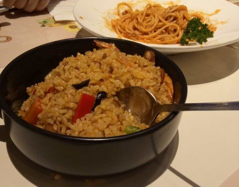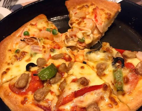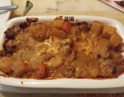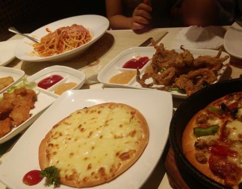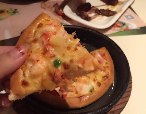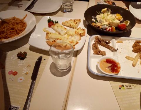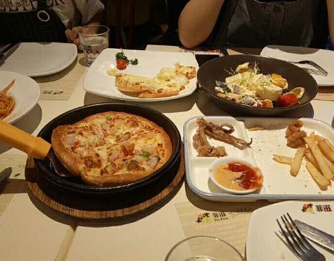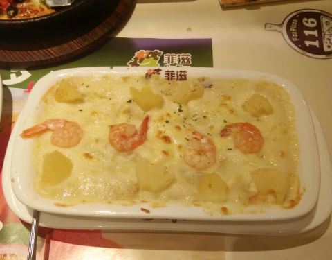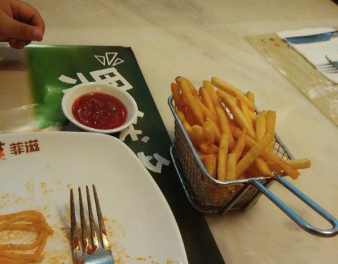 - 披萨不太好吃,灯影牛肉焗饭也不好吃,不如菠萝焗饭,意面还不错。喜欢芝士条,最爱芝士条,每次必点