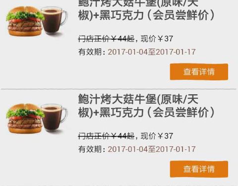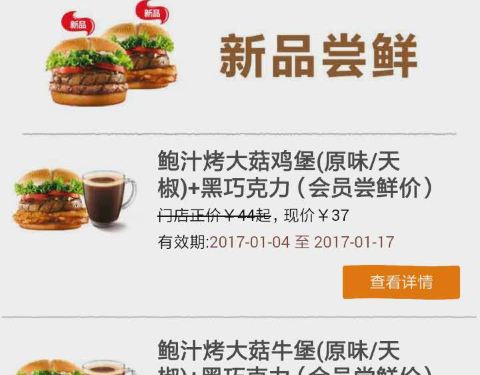 千万不要吃什么香姑牛堡(正在推广的新品尝鲜44元优惠价37元每份,另加一份巧克力饮品),难吃死了,谁吃谁上当。