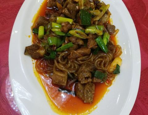 - 银川黄渠桥羊羔肉在当地很有名,主要吃爆炒羊羔肉,一份就是一斤肉,价格有点贵,羊肉确实嫩,跟粉条一起炒