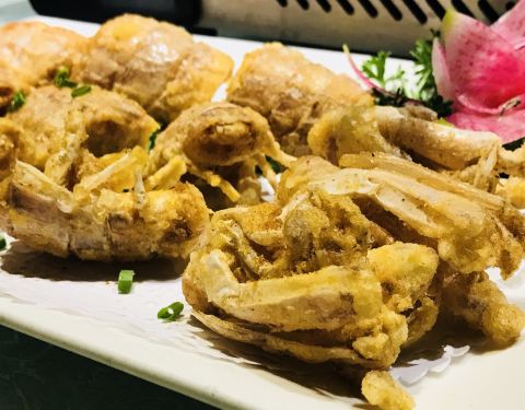 - 甘草潮菜馆(海宁路店),环境一般般,比较接地气。椒盐鸭舌,这个做法比较香,很好吃。虾和螃蟹都比较新鲜