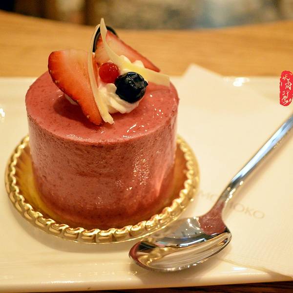 MOMOKO蜜桃家好像最初是以网店来发家的,成了火热网红之后在市中心开了实体店来扩大名气和提高食品安全性。 远洋太古里的这家分店很好找,就在地下一层ole超市的隔壁,电梯下去拐个弯就到了。实体店地方不大,氛围简约干净,小饰品和墙画增加了一些时尚氛围,除了位置过于幽闭没有室外座位外,其他都没什么太大问题。 品种比我想象中的要多,近二十余种甜品基本可以满足绝大部分慕名而来的少女心。特别是新款甜品——蜜桃,做到逼真的外形,远远看过去真心很像一只多汁的水蜜桃,模样真心很美~ 招牌的酒味慕斯蛋糕——五粮酒黑方,口感名不虚传,糅合酒香的甜蜜滋味轻而易举的征服了嗜甜的酒鬼,口感比酒心巧克力更加升华。 这款蛋糕是以黑巧克力蛋糕为基础,蛋糕胚和巧克力酱带来的不是一味的甜腻,而是颇有层次感的各种巧克力差异,最上面那层才是渗入了五粮液的巧克力涂层,外部覆以巧克力薄片和巧克力粉,把酒味儿轻巧的锁在了最上层,保证味蕾的第一时间接触,让我真心喜欢。 另一款樱花慕斯是从日式玄饼中变化而来,增加了口感轻盈的芝士底,口感先是清爽后是甜腻,相对来说比其他款甜度要低一点,当然对我来说还是太甜腻了点——可惜无奈这儿的甜品款总体都是偏甜口感。 咖啡一般般,属于喝完就毫无印象的那种,门口的冰淇淋柜台让人颇有吸引力,甚至还有浓度到达120[%]的信长冰淇淋球,号称是宇宙最强浓度,非等闲之人难以销售~