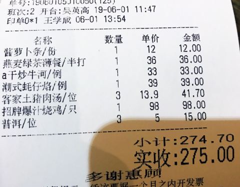 中午和朋友来到广东道至正餐厅(区庄店)吃饭。这家店位于环市东路419号,离区庄立交旁区庄地铁E出口很近,交通非常方便。 餐厅较大,具有浓郁的怀旧风格。顾客不很多,有不少空位。 【酱萝卜条】12元 餐前小吃,分量不多。 【潮式蚝仔烙】39元 粉很多,蚝仔很少,感觉像是葱花煎饼。 【干炒牛河】33元 分量一般,炒得没有镬气,牛肉很硬很老,河粉很油。 【土猪肉汤】13.9元/盅 汤比较浓,比较甜。 【招牌爆汁烧鸡】98元 价格小贵,卖相不错。不过,鸡质较差,鸡肉不够嫩滑、不入味。 【燕麦绿茶薄餐】半打36元 薄餐较硬,非常粘牙。 茶位费5元一位,买单接近280元,人均消费90元。 总的来说广东道至正餐厅(区庄店)环境不错,服务一般,价格小贵,味道非常一般。