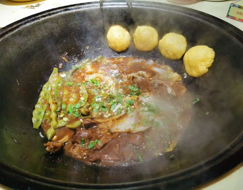 来这家吃东北菜,不得不说的服务,贼热情! 工作人员每位都很热情亲切的称呼食客大舅大舅妈。 还有表演,东北特色能歌善舞的,真的没点特长都不能做服务员了。 环境不是很大,所以有点拥挤。 菜品基本上铁锅为主,各种炖。 菜品选择不多,所以吃不了几个菜。