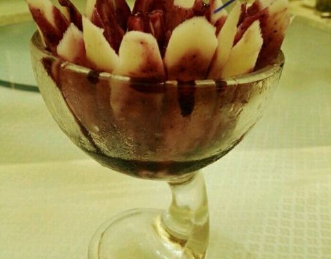 - 整个饭店包间好多好多呀,像迷宫一样…蓝莓山药,摆在玻璃杯里,造型好好看,味道也不错哦