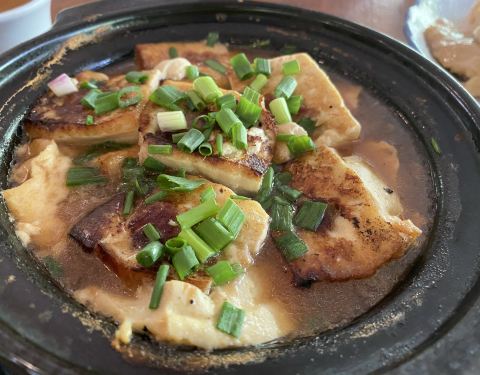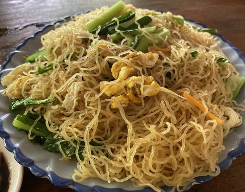 去惠州旅游,住在了龙门的一家温泉酒店里,这一家农庄离酒店蛮近的,车程就两分钟的样子,那天来到酒店有点早,说房间还没有准备好,所以就先吃个午饭吧。农庄有停车位,但是不多,或者临时停在门口就可以了。里面有小花园,用餐大厅是开放式的,四面通风没有空调,只有靠风扇,也有小包厢。来到的时候见到大餐桌上都有标号码,知道他们也是做旅游团餐生意的。 {龙门胡须鸡},来到龙门的第一顿,胡须鸡肯定要吃吃,点了半只白切鸡,就是想要吃原汁原味的,鸡没有预期那么好,比较肥,皮上的肥油非常多,鸡肉也不够爽口,虽然鸡皮看上去比普通鸡要黄一点,但是口感还是差一点。 {炒米粉},炒米粉咸得发苦,根本不能吃,告诉服务员这种情况,服务员的反映若无其事,还说先问一下,然后不见人了,再找来了老板娘,老板娘马上端走说让厨房弄一下,原来所谓的“弄”一下,厨师居然撒糖下去再翻炒一下,米粉瞬间变得微甜起来了。而且油下多了,油也是一股油溢味,翻炒过的米粉份量也随之变少了不少。 {鱼香茄子煲},这道菜还算可以了,味道总体还得去,茄子份量不错,虽然油多了一点,也没有找到成块的咸鱼肉,都是碎、烂的鱼末。 {酿豆腐},没有什么豆味的豆腐,是普通,不怎么推荐。