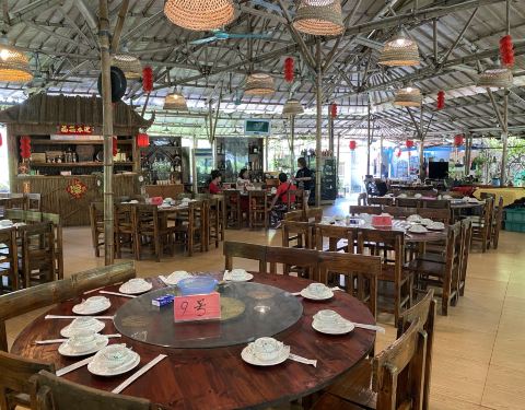 虽然这家农家乐饭店在靠近市区的地带,但是环境非常天然,有很多温泉,竹子林